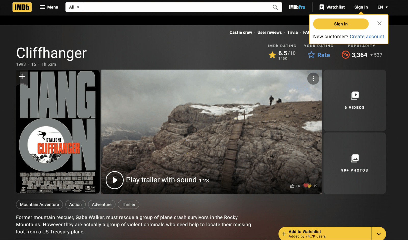 Cliffhanger cannot be compared with any of the recent superhero action movies. It is the definition of action movie.