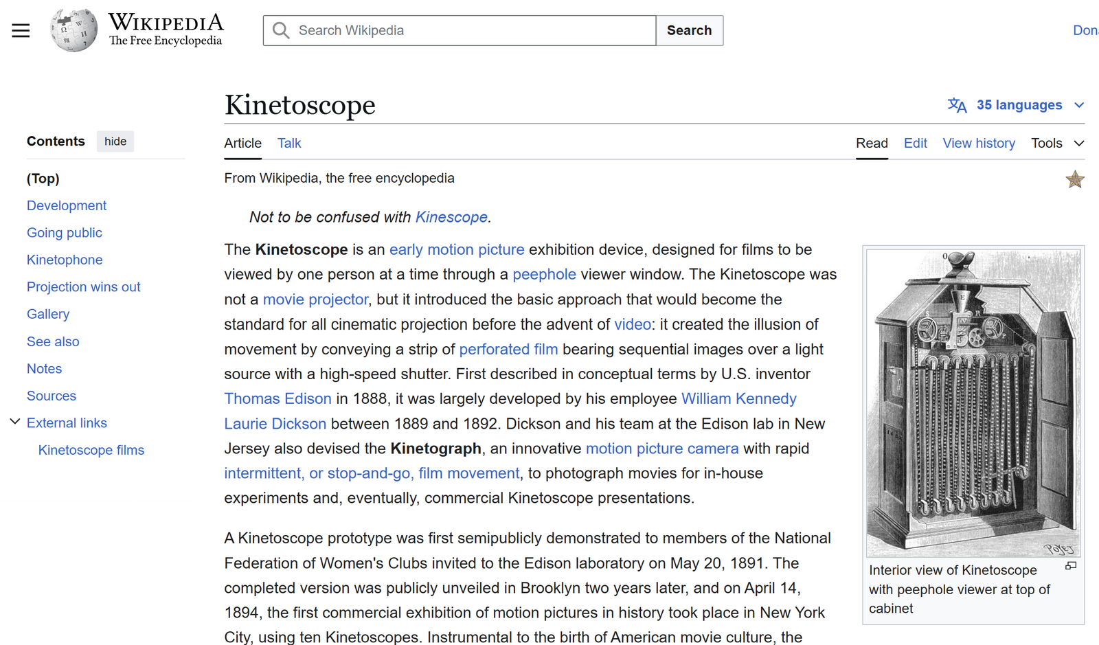 - Edison’s kinetoscope