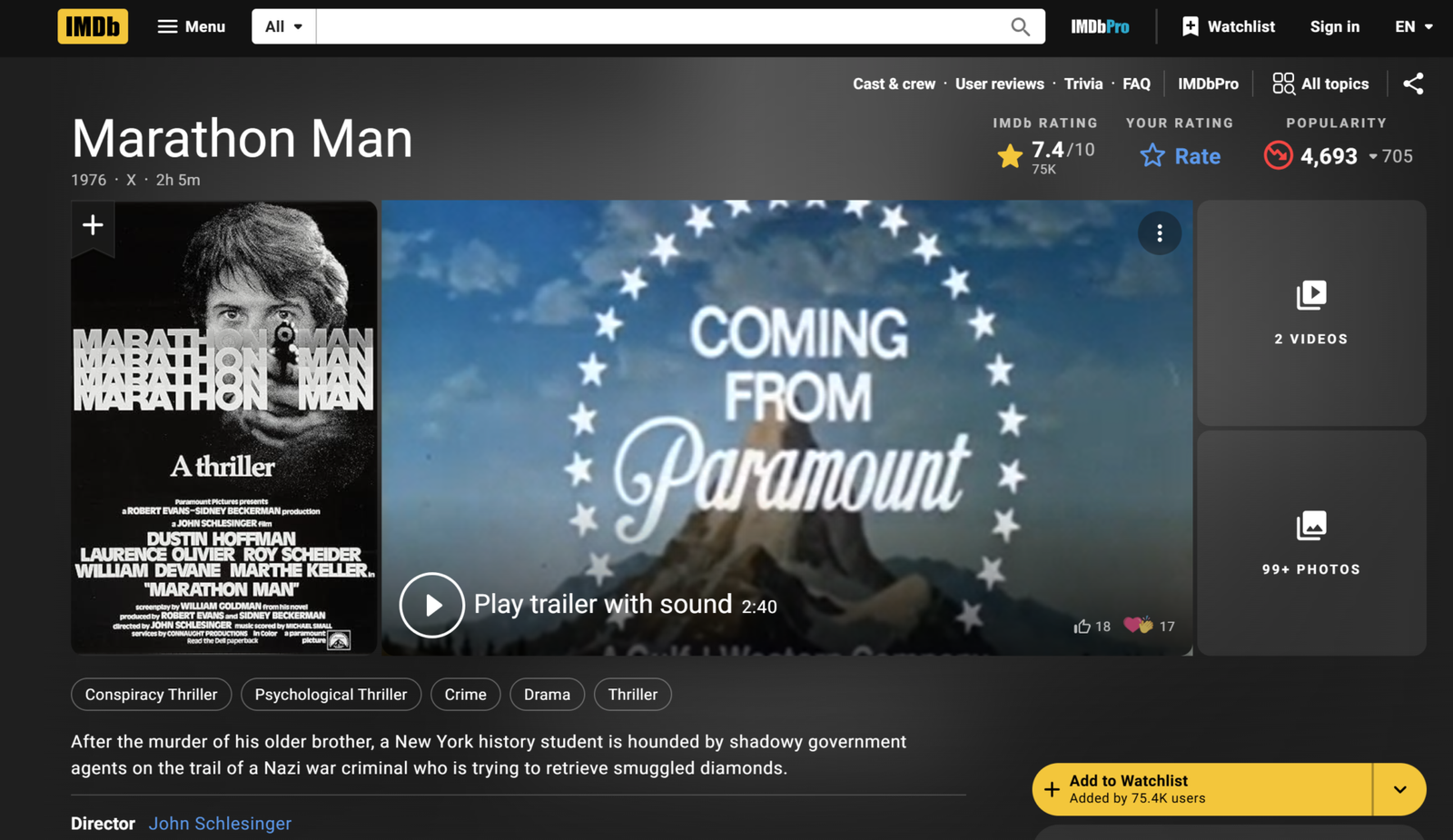Compare, for instance, Black Rain, The Predator, Die Hard, The Rock, Conair, Breathless, Marathon Man, to name a few, with recent Marvel action movies.