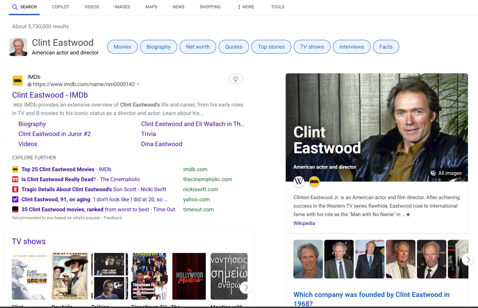 - Clint Eastwood has the highest fame, 25 famons, followed by