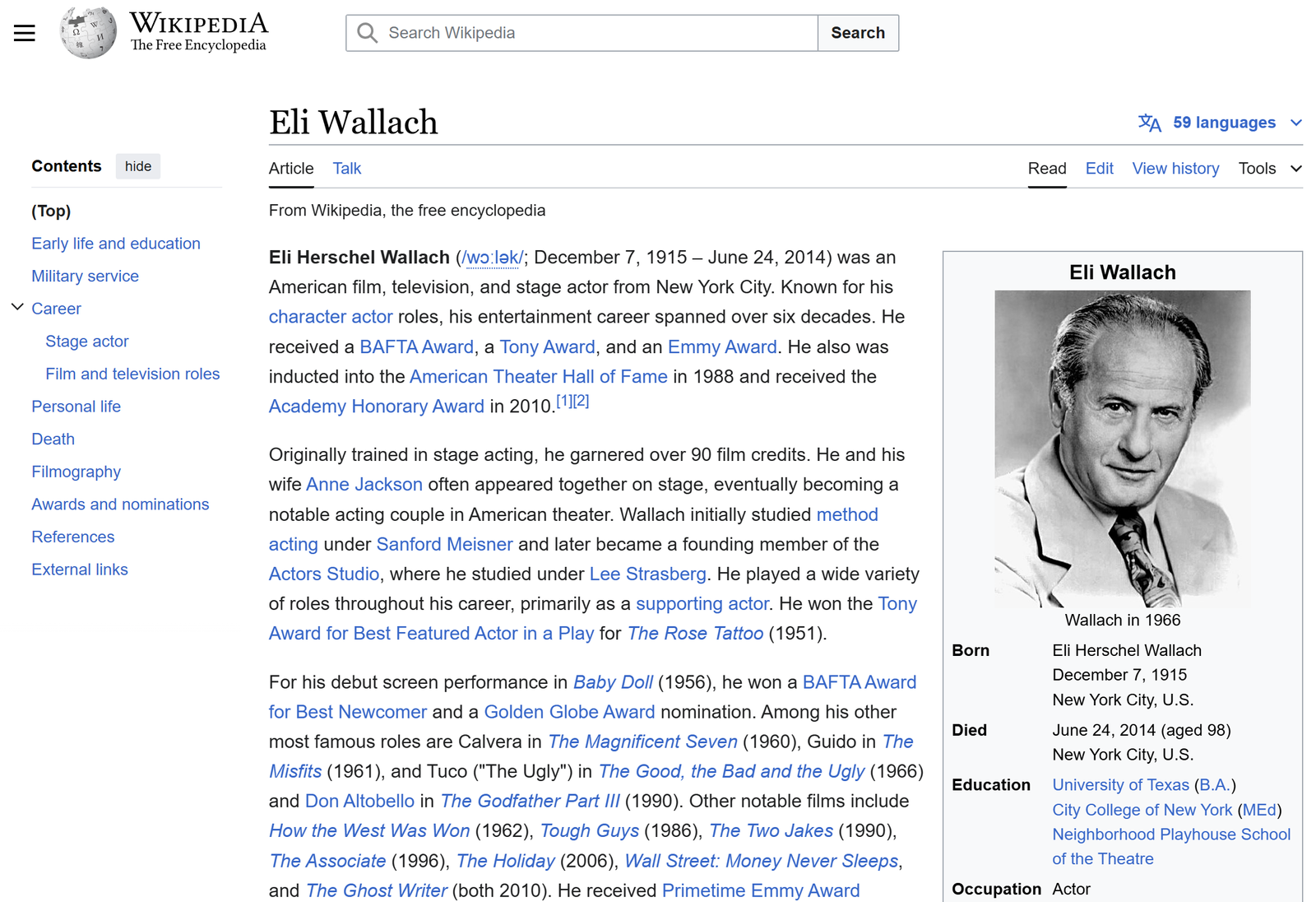 This increase agrees with their first appearances on the screen (i.e., in 1951 and 1952 for Wallach, mainly on TV, and Van Cleef, respectively, in 1955 for Eastwood). The earlier appearance of Wallace in the books is attributed to his stage appearance which took place in 1945.
