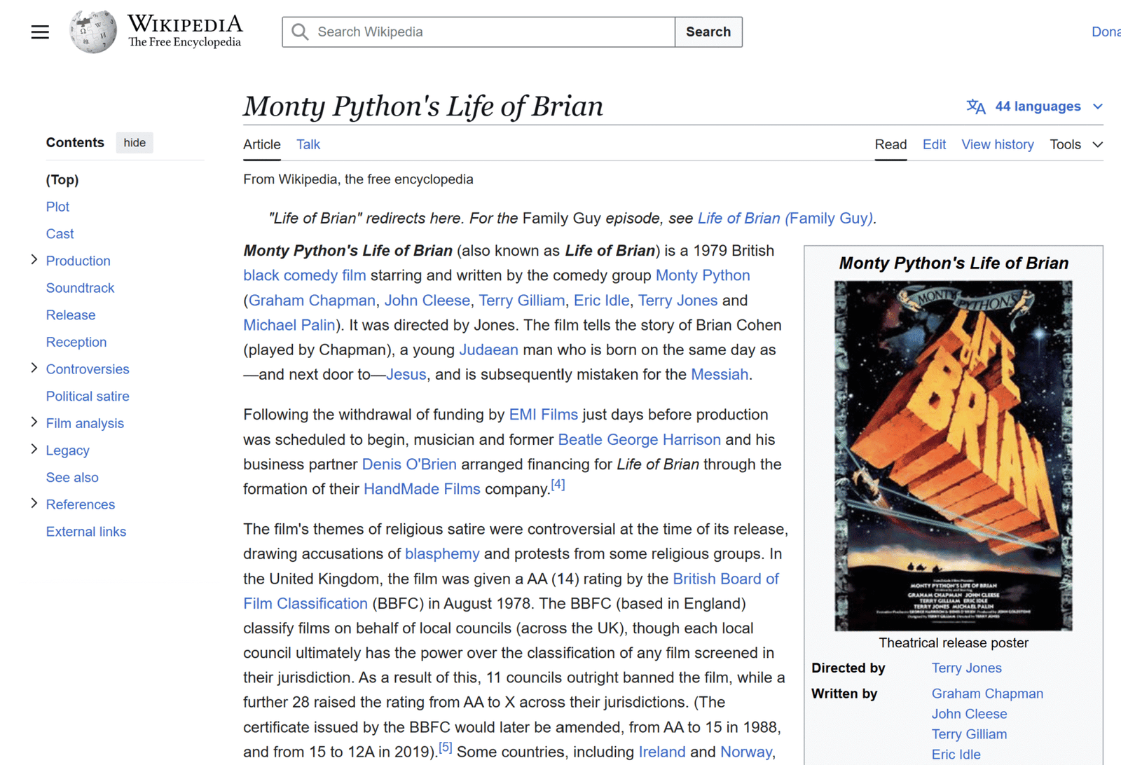 The film’s themes of religious satire were – and to some extent still are – controversial at the time of its release. There were accusations of blasphemy and in some countries it was banned for some time.