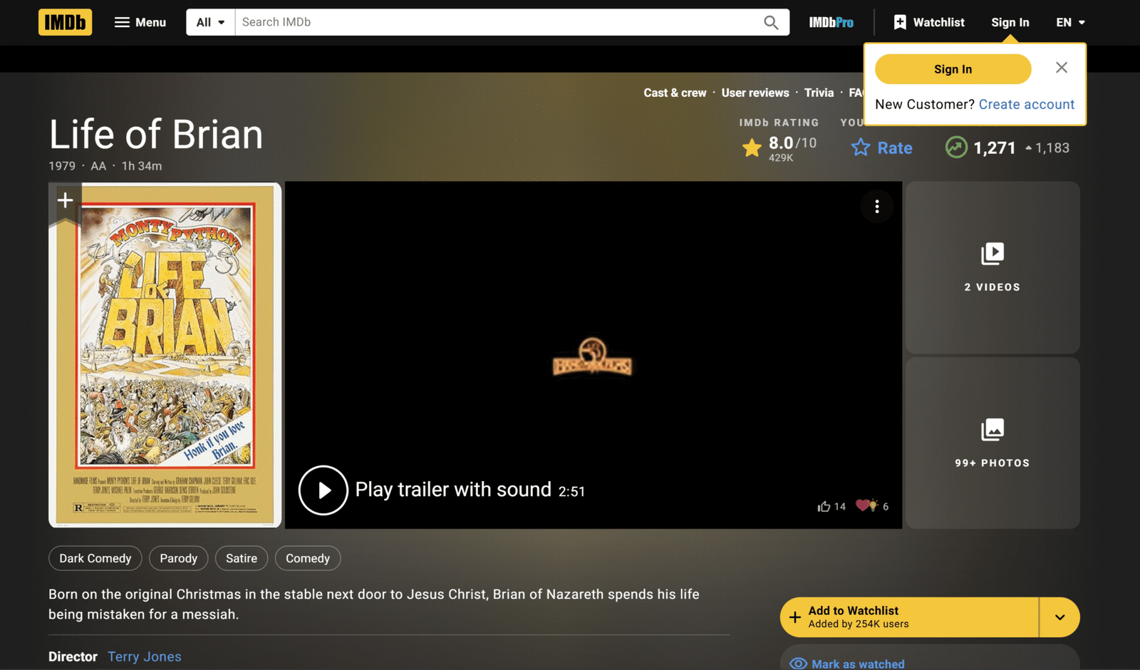 Life of Brian deserves by all means a leading place in any cinephile library.