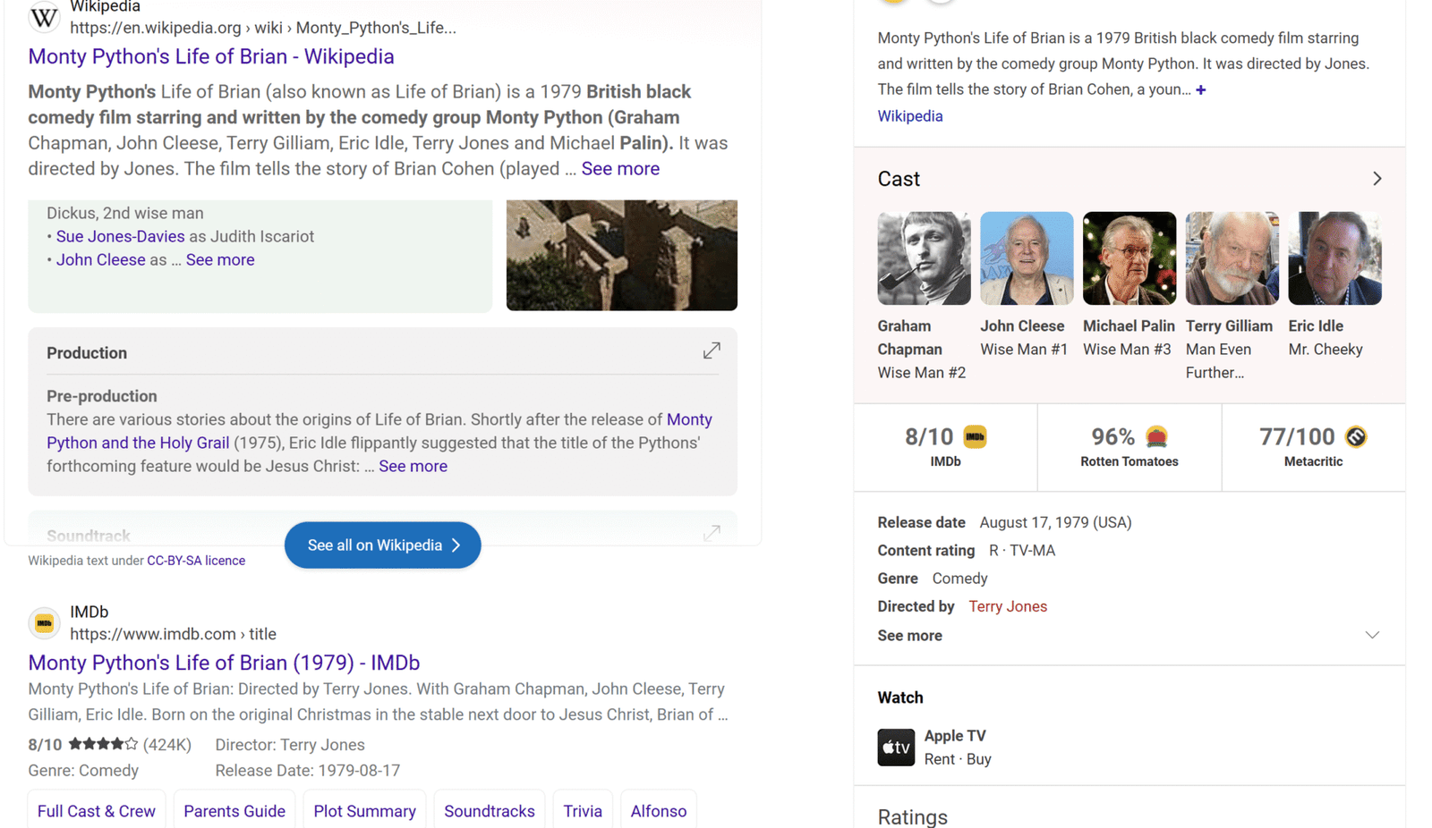 Life of Brian is a 1979 British black comedy film. Graham Chapman, John Cleese, Terry Gilliam, Eric Idle, Terry Jones and Michael Palin, known as the Monty Pythons, star and wrote it. Graham Chapman directed it.