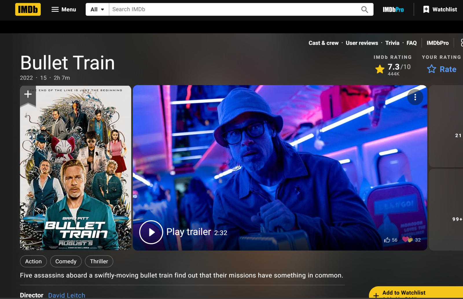- the non-stop action movie Bullet train, starring Brad Pitt, Joey King, and Aaron Taylor-Johnson (the next James? who knows), directed by David Leitch.