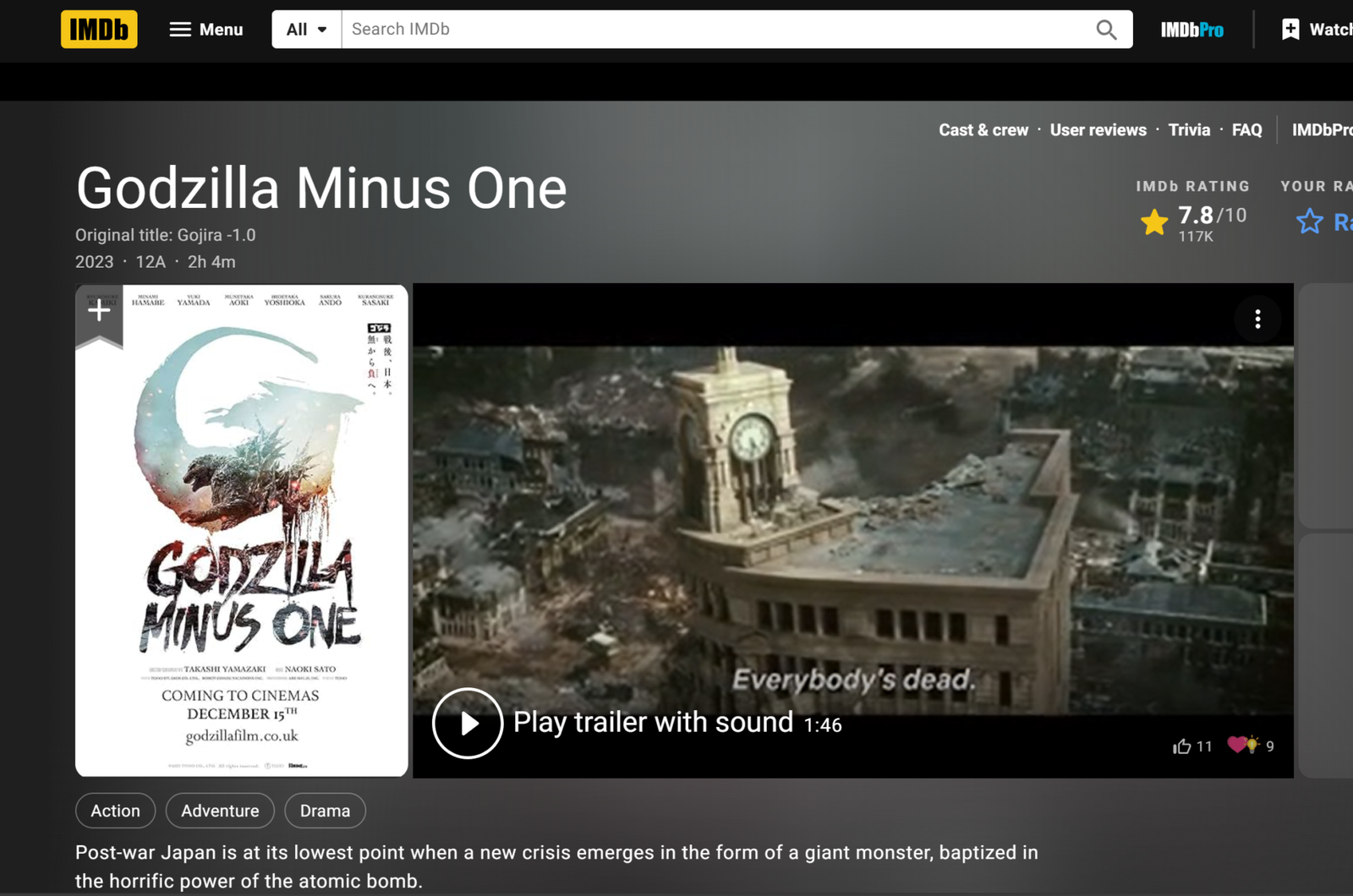 - the epic adventure Godgilla minus One, starring Minami Hamabe, Ryunosuke Kamiki and Munetaka Aoki and directed by Takashi Yamazaki.