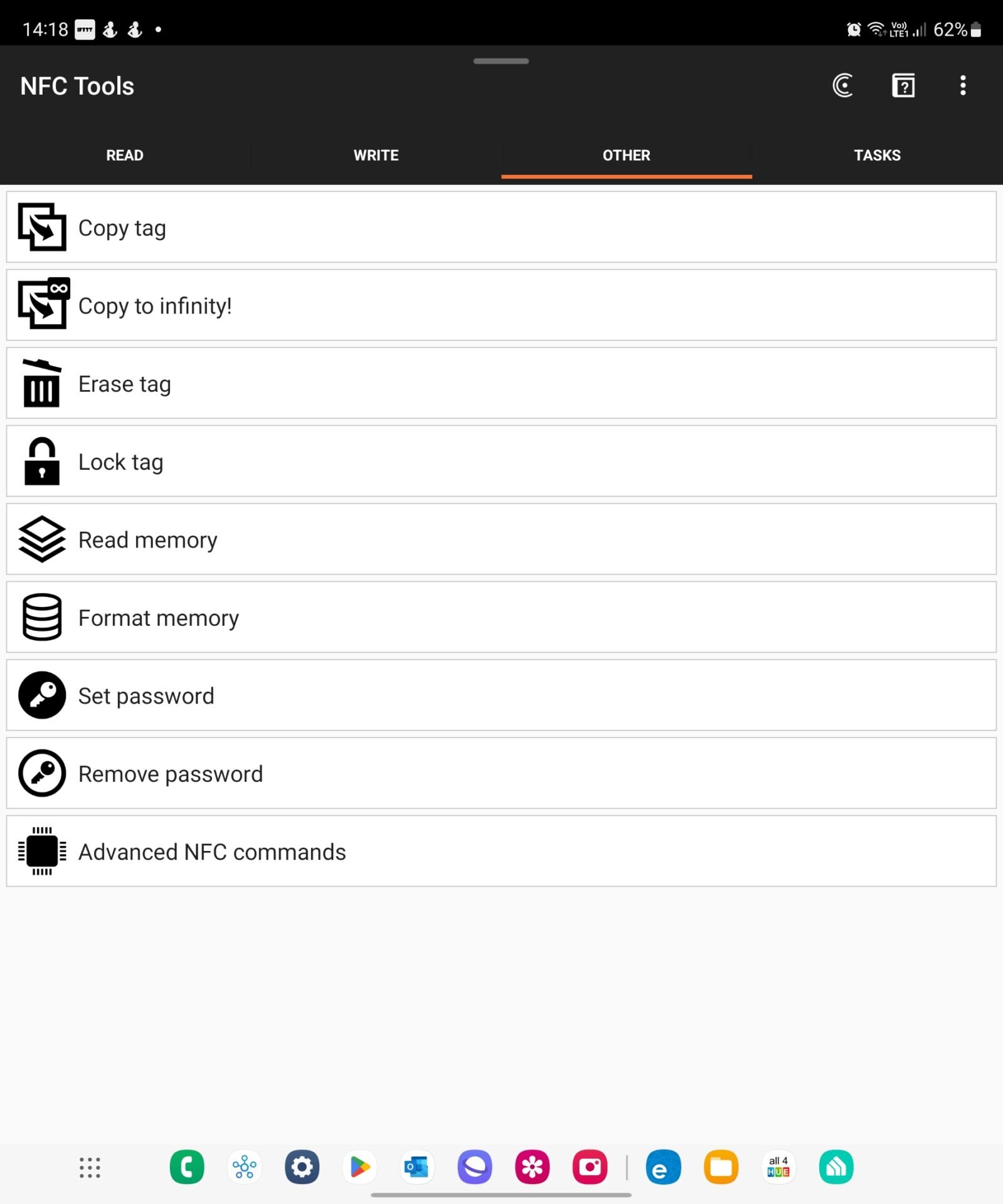- Figure 1. The NFC Tools app used for formatting, erasing, etc., NFC tags.