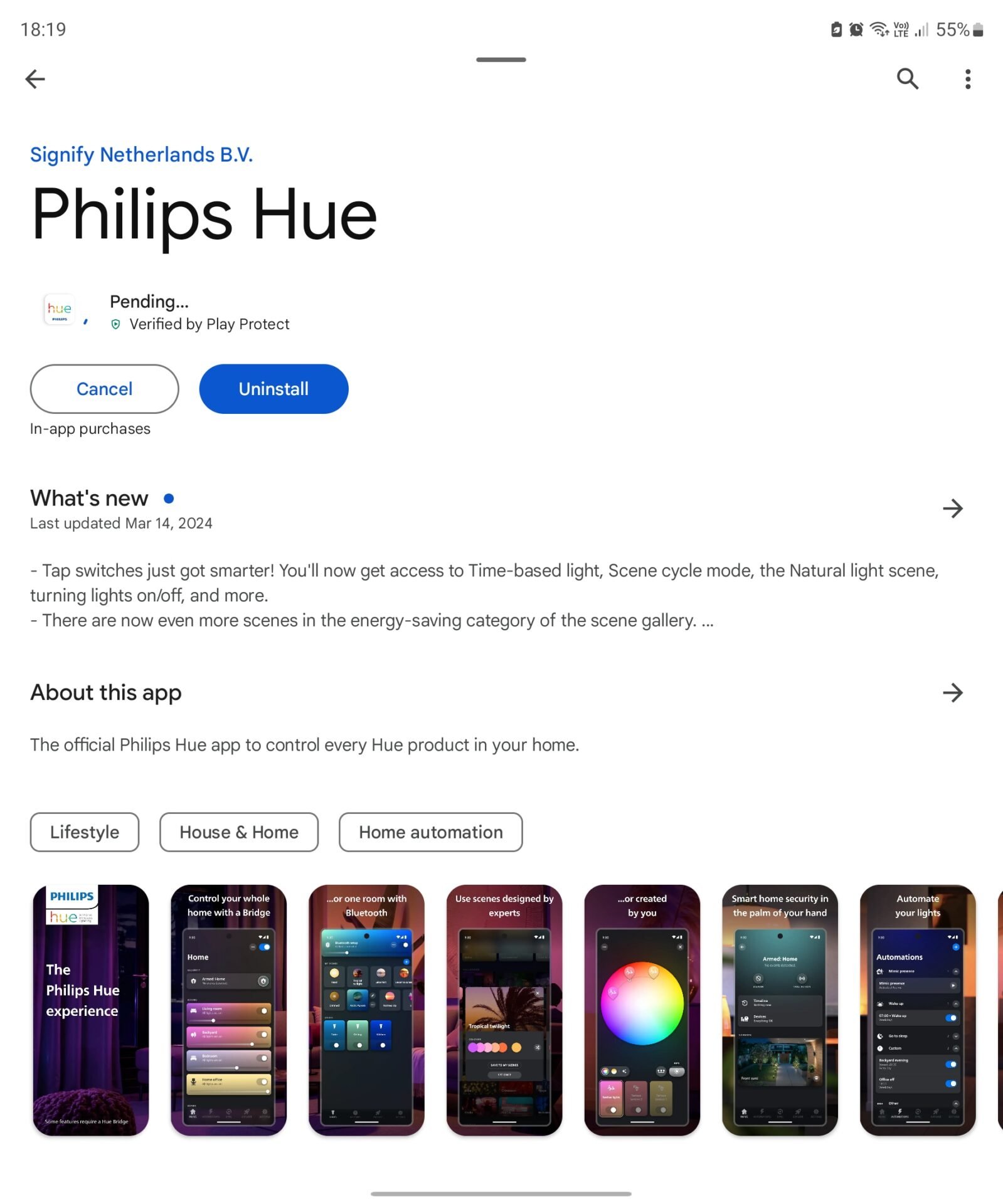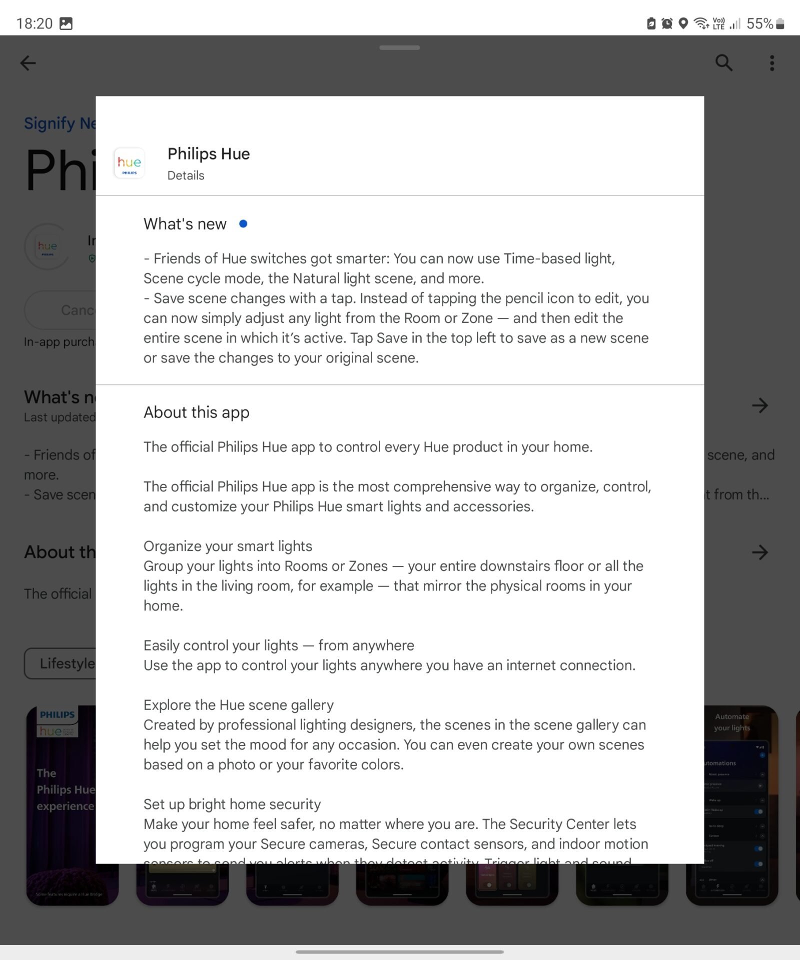 The Philips Hue app gets a new update. Among the changes is the fact the non Philips switches (i.e., Friends of Hue switches) get smarter by having time-based light, scene cycling and more.