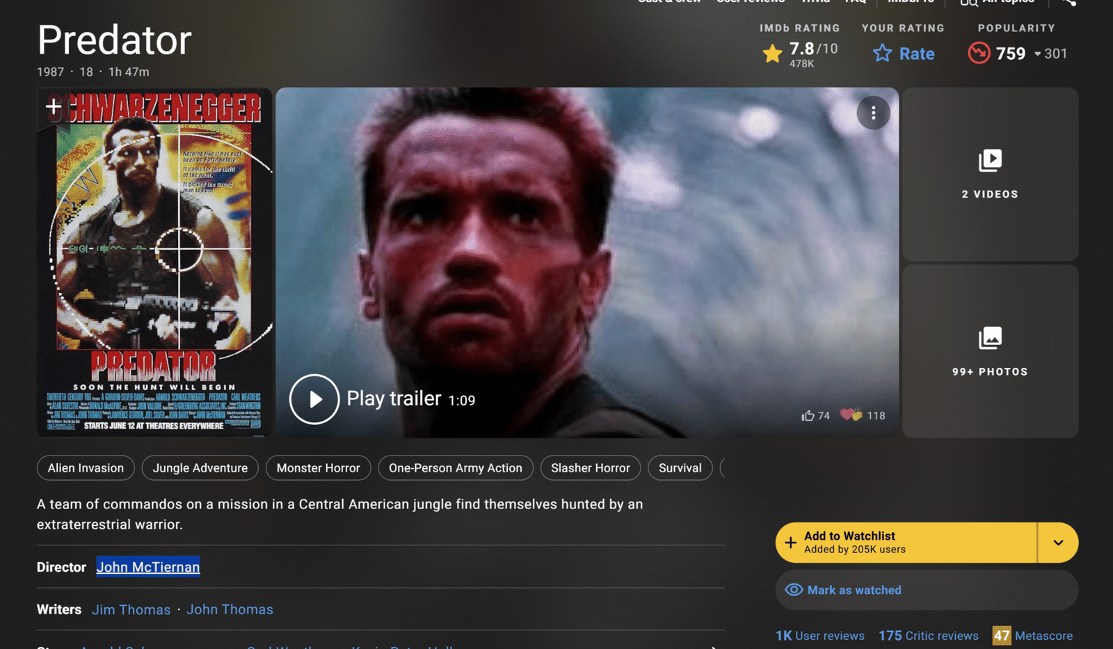 It just happened to watch the Predator again, for the 10th, or so, time. What a movie.