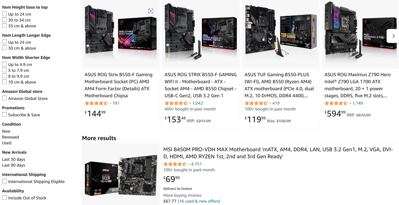- Mini ITX: smallest size, least expansion slots/features, smallest case, least cooling.