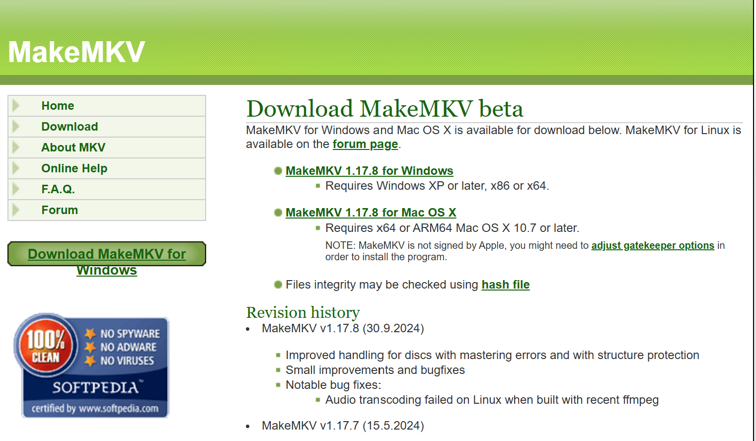 Firstly, we need software to transform the physical discs into media files. There are various applications to do this. The best one is MakeMkv. It turns DVD or Blu-ray disks into a Matroska file (i.e., a file with an extension ‘.mkv’).