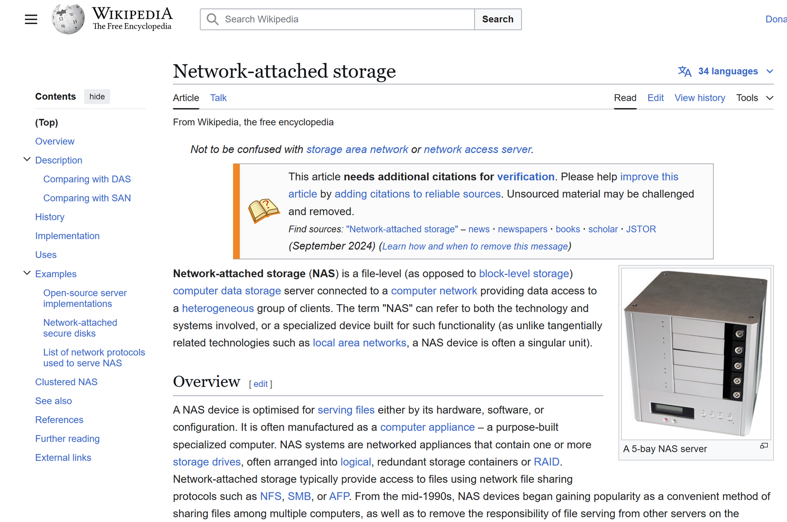 There are several brands of NAS devices, e.g., Synology, Qnap and Asustor. My personal preference is Synology.