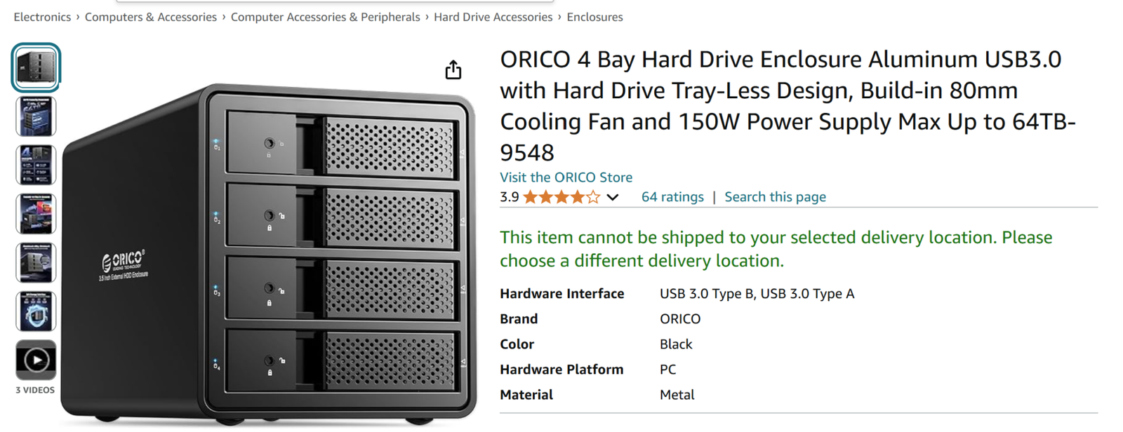 Another solution is to use a USB3 4-bay hard disk enclosure which can be connected to: