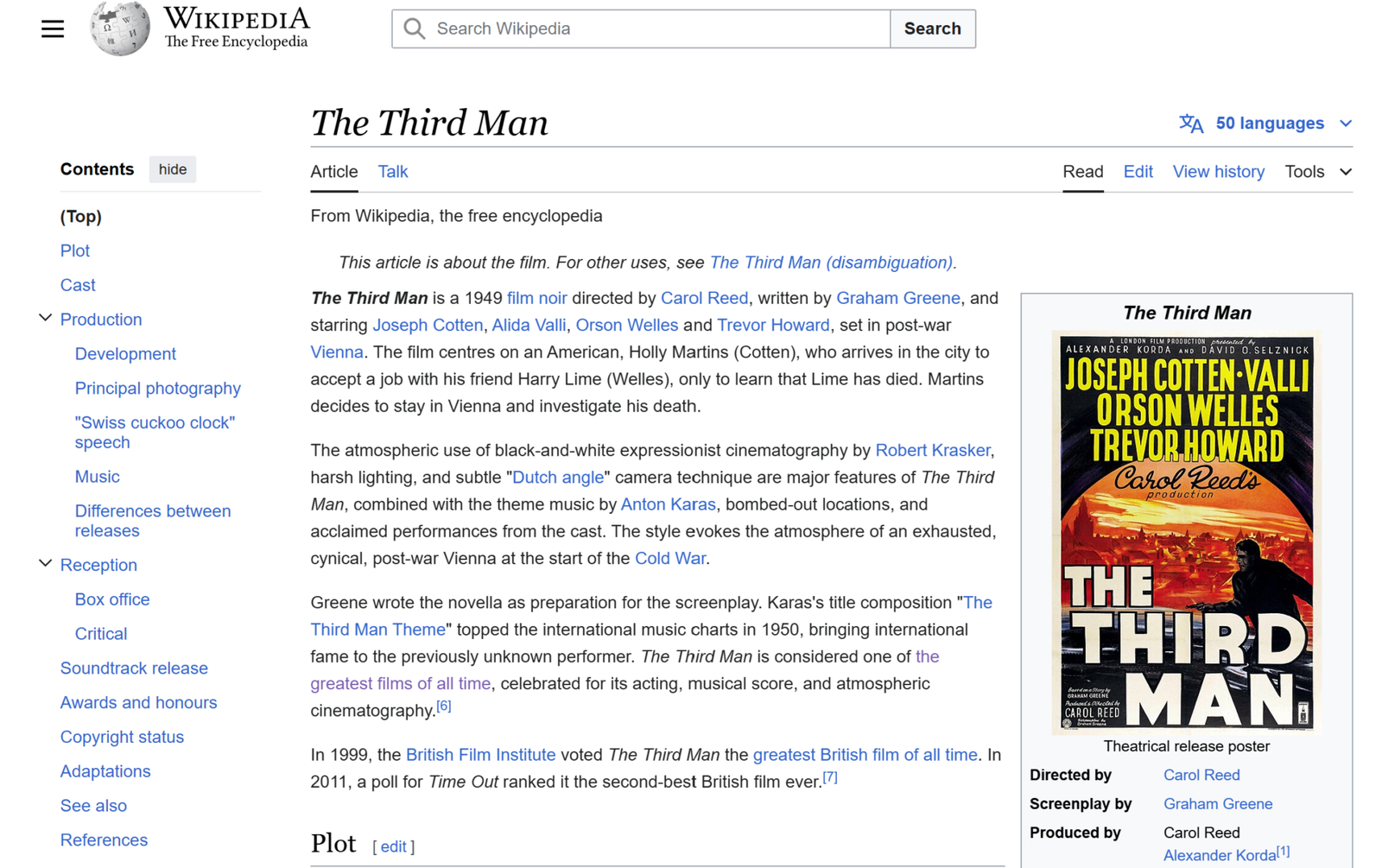 The Third Man is a masterpiece that obviously deserves a leading place in any cinephile library.