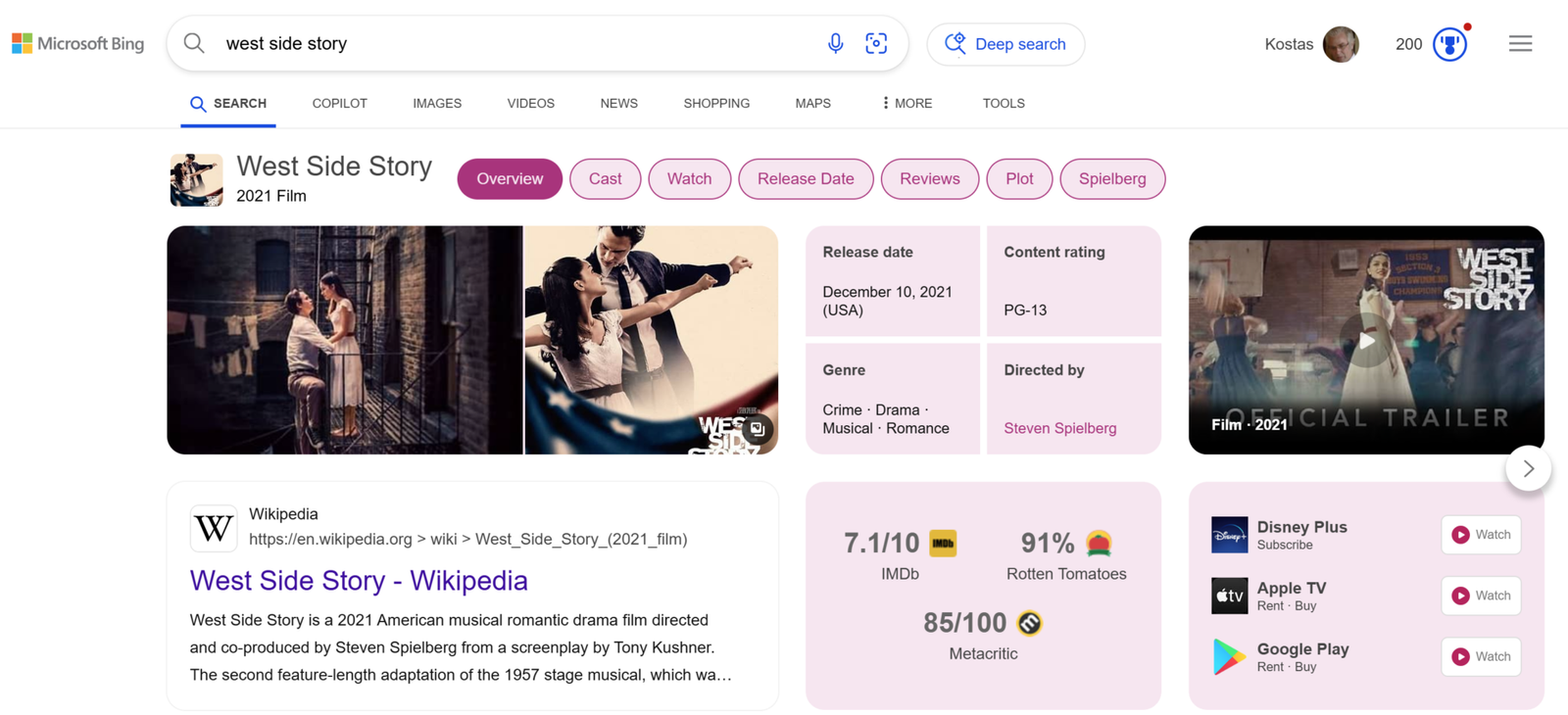 West Side Story is a 1961 American musical, romantic drama film. It was directed by Robert Wise and Jerome Robbins. The cast includes Natalie Wood, Richard Beymer, Rita Moreno, Russ Tamblyn and George Chakiris. The story was inspired by Shakespeare’s play Romeo and Juliet.