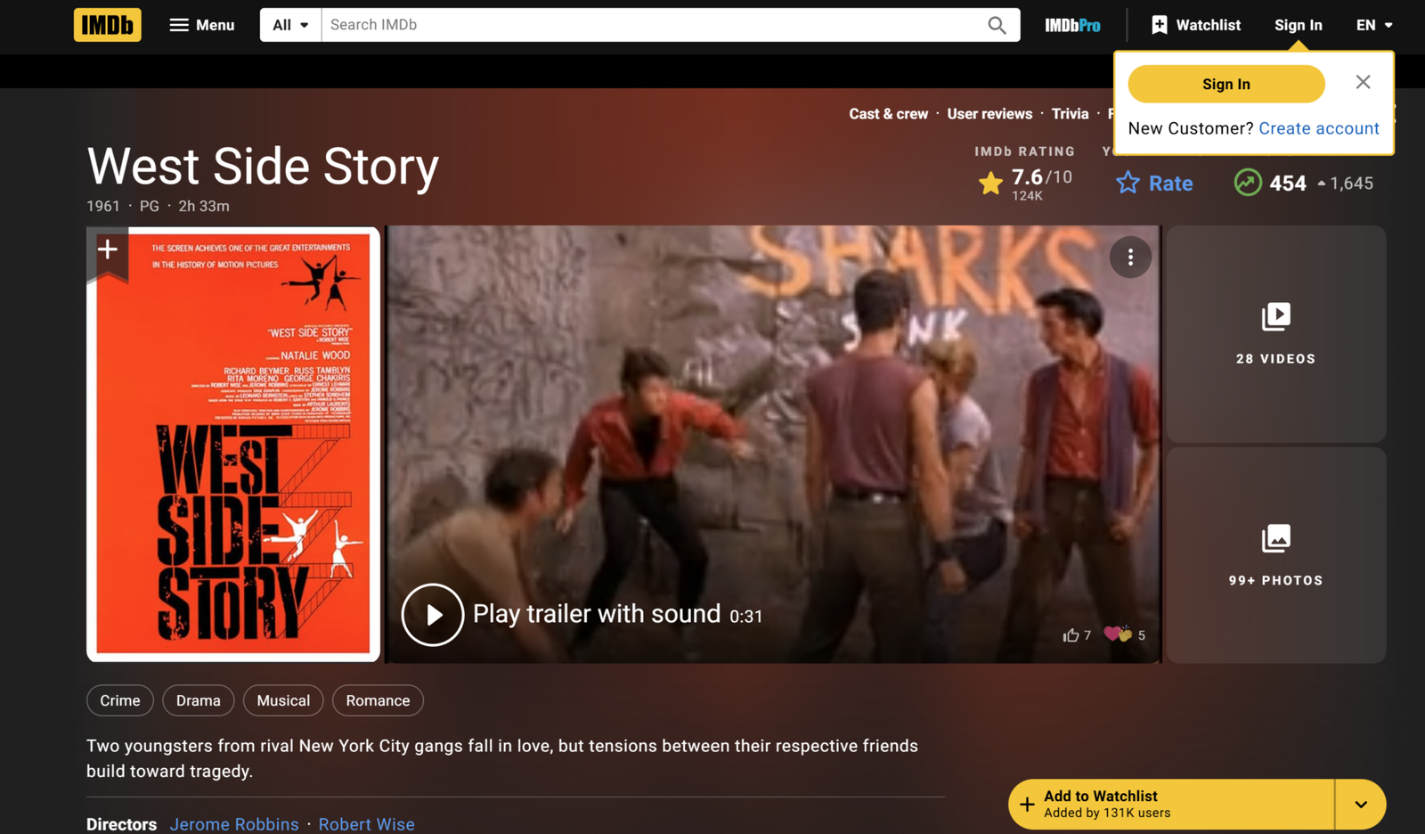 The film is an adaptation of the 1957 Broadway musical of the same title. Leonard Bernstein composed the music. Stephen Sondheim wrote the lyrics. The soundtrack by itself is a masterpiece.