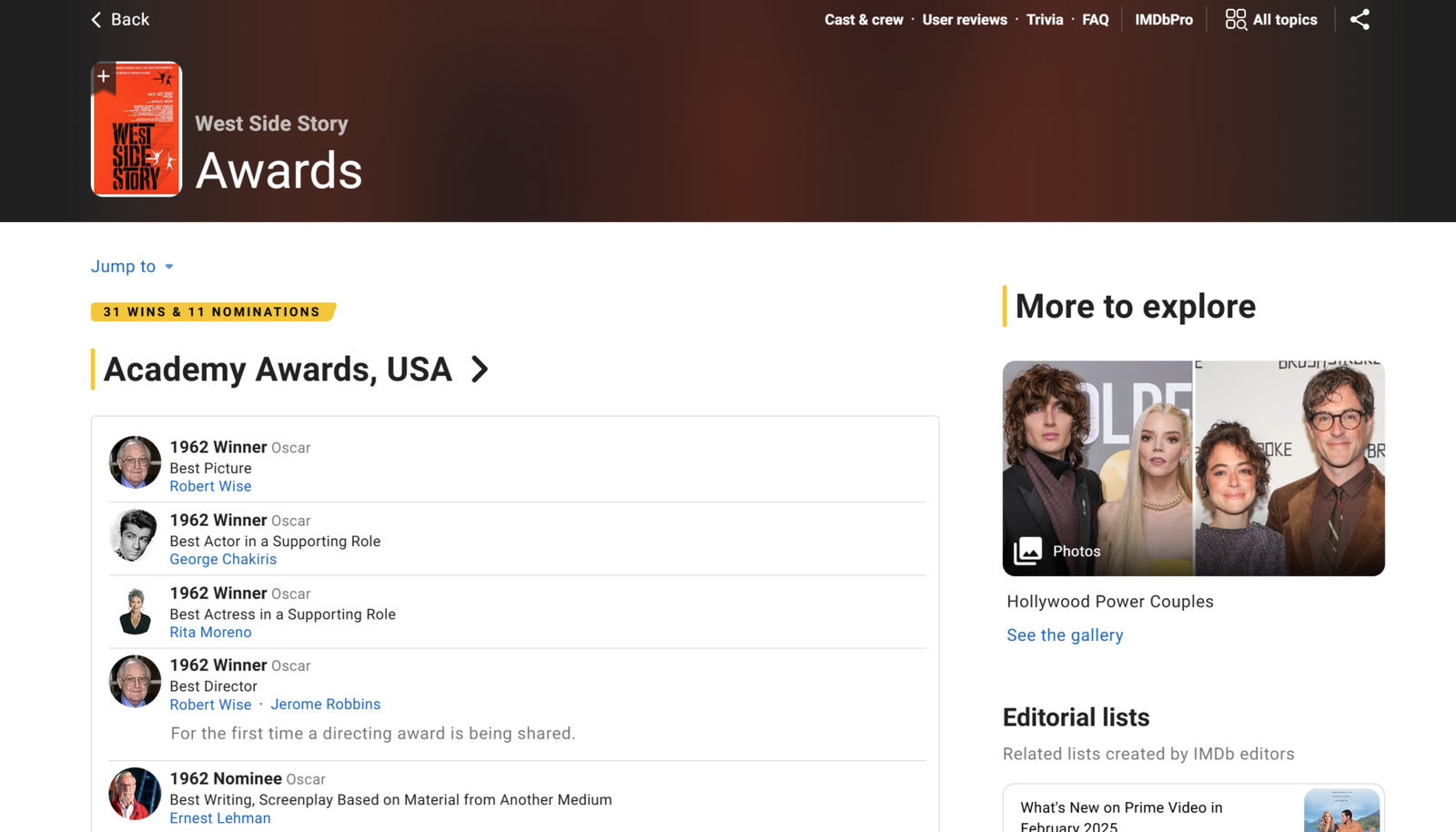 It was nominated for 11 Academy Awards and won 10 Awards, including that of Best Picture. It is the musical with most wins.
