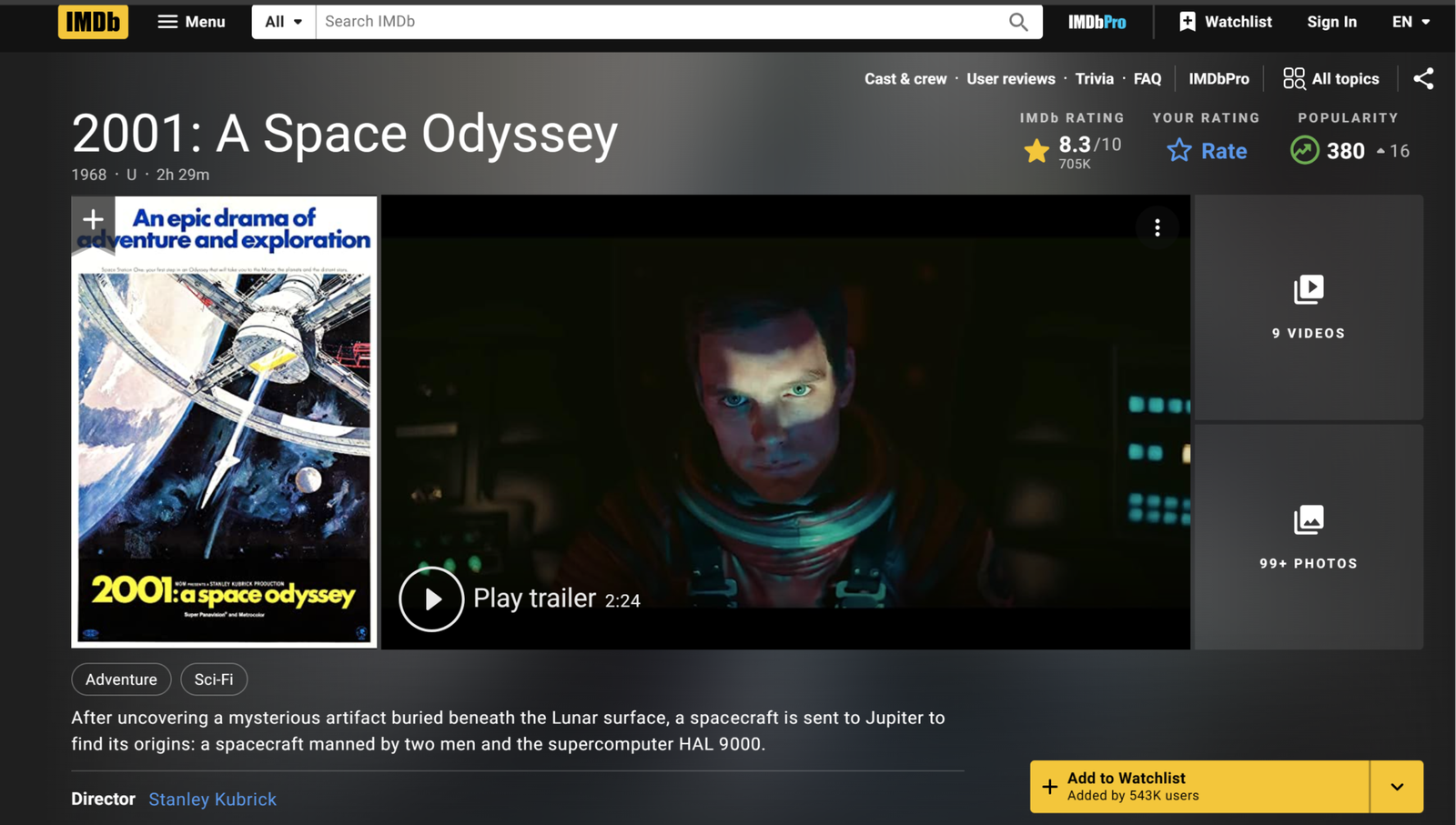 2001: A Space Odyssey certainly deserves a prominent place in any cinephile’s movie library.