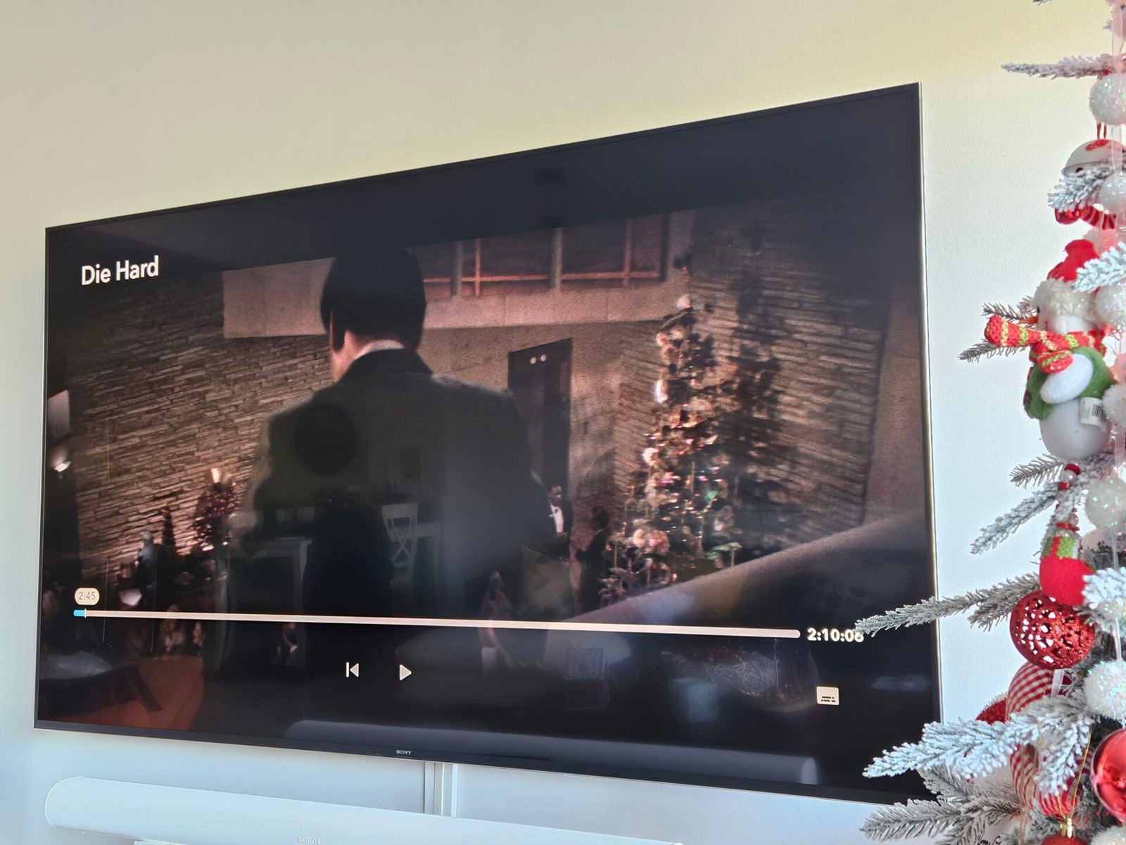 At 1:35:56 we see John McClane again in front of another small Christmas tree.