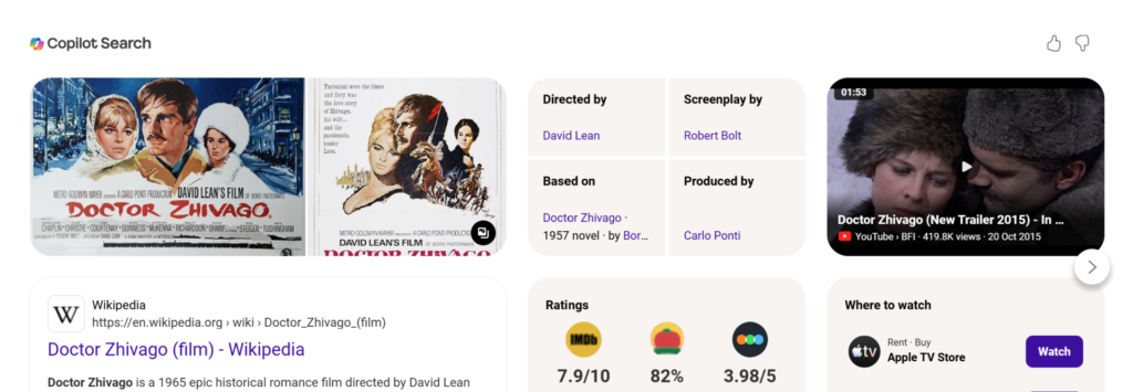 But above all, it is the Maurice Jarre’s score and the balalaika melody, which flows through the film. It makes the original sentiments you get unforgetable.