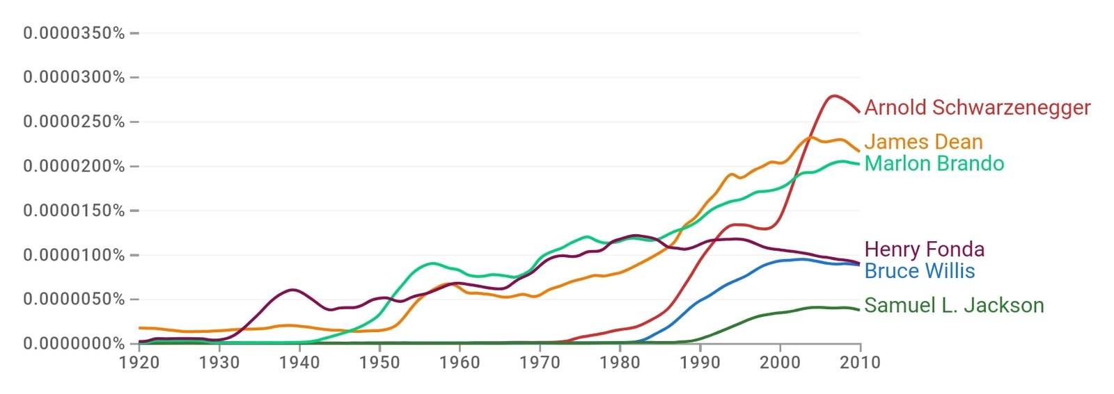 Here I use Ngram to identify the fame of another three iconic, talented movie icons: