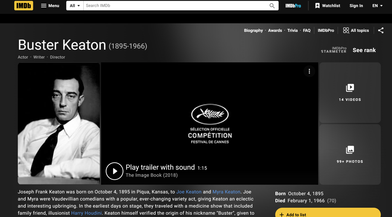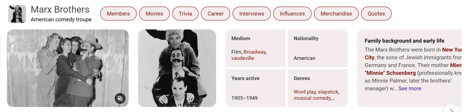 Among them Marx Brothers are the most famous with 14 famons. Buster Keaton follows with 10 famons. Groucho Marx and Keaton have an Academy honorary award.