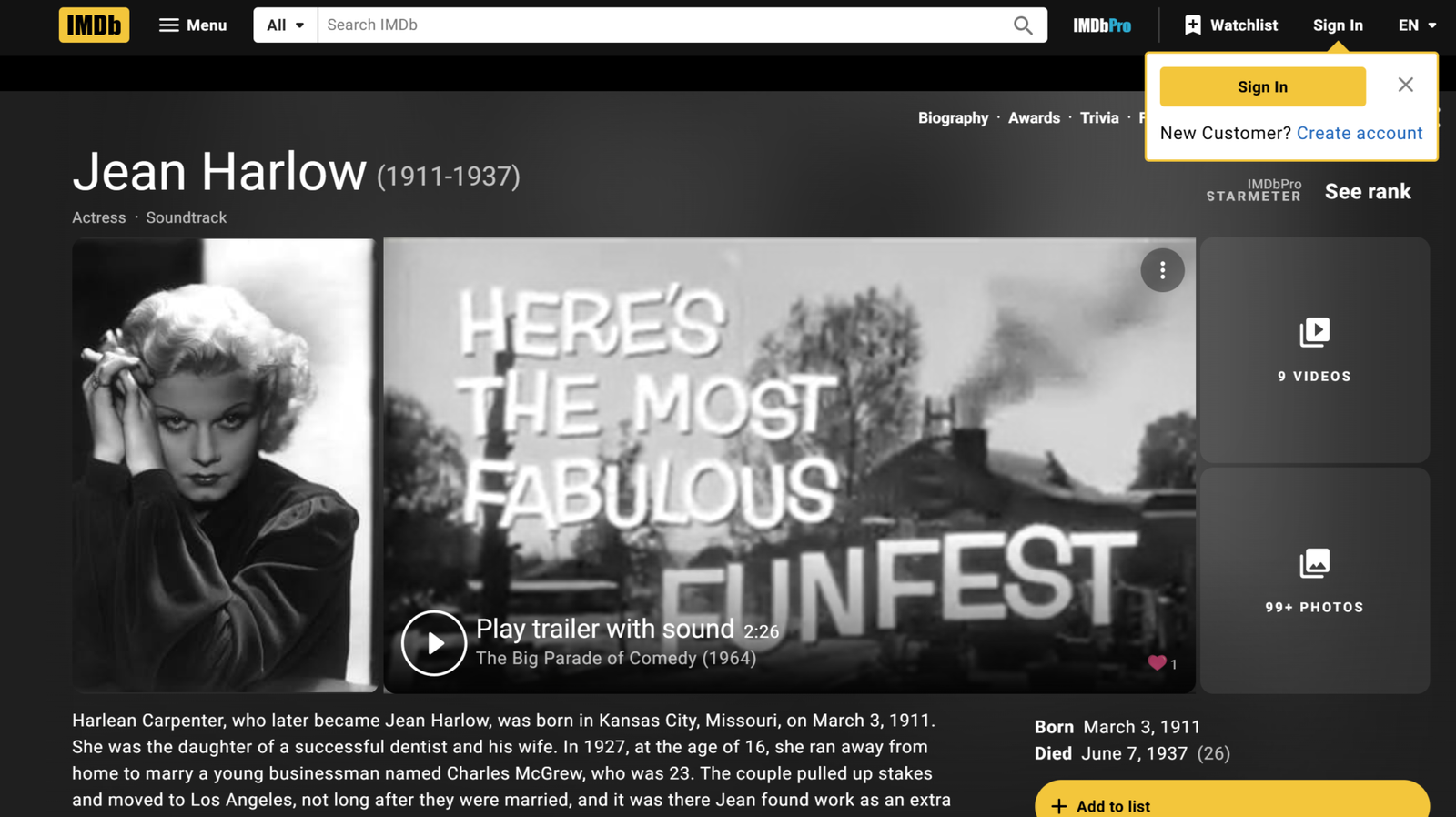 . This post is part of a series of posts searching for actresses/actors more famous than Monroe and Wayne.