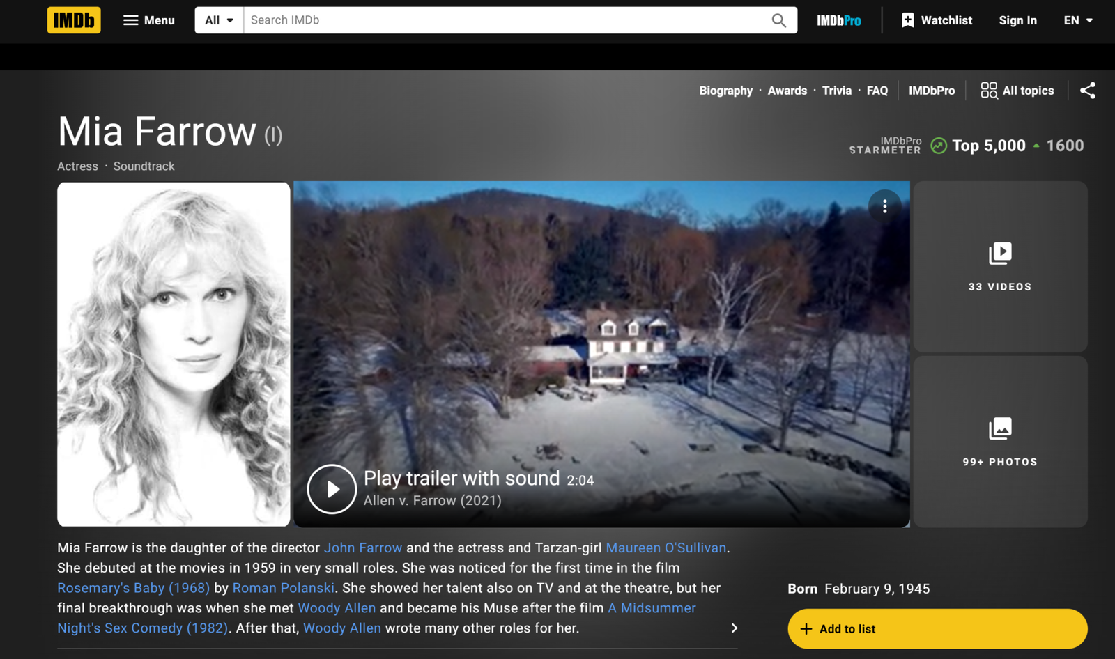 - Mia Farrow