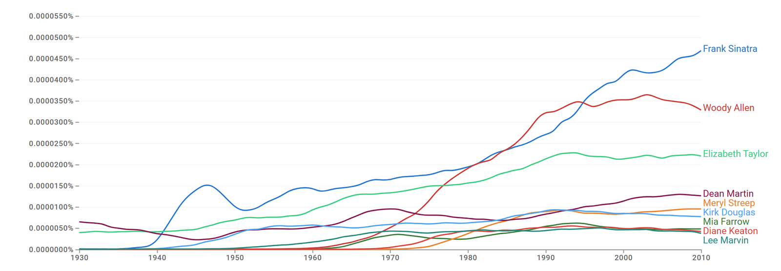 In previous posts I used the Ngram tool to identify the fame level of several actors and actresses.
