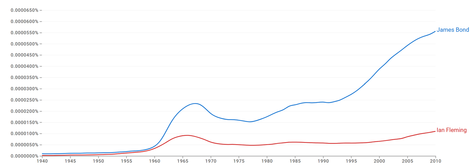 Notwithstanding, the fame of James Bond per se, 55 famons, is almost two times higher than the sum of the fame of all Bond actors and five times higher than that of the James Bond creator, Ian Fleming (10 famons).
